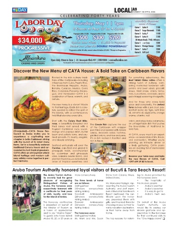 taurant in Aruba invites you to bean and potato curry, and sau- sauce, avocado salad, tostones, At CAYA, every meal is an experi-
