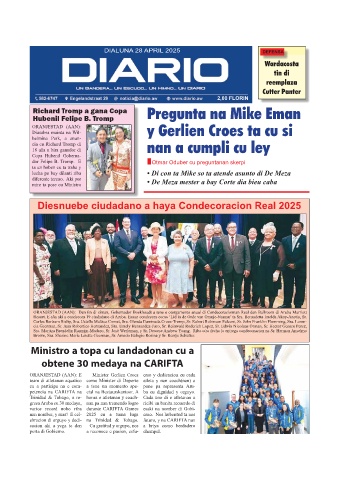 Resort. E aña aki a condecora 19 ciudadano di Aruba. Esnan condecora como ‘Lid in de Orde van Oranje-Nassau’ ta Sra. Bernadetta Imelda Akoy-Anetia, Sr.