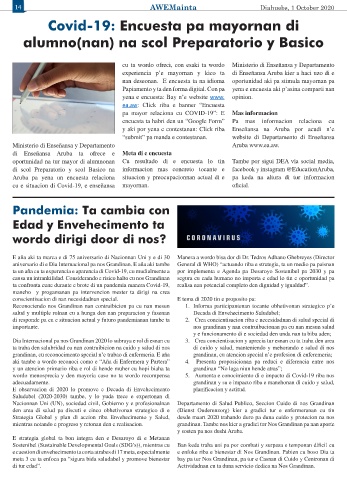 cu e situacion di Covid-19, e enseñansa mayornan. oficial.