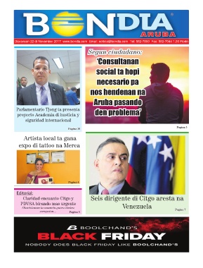 Diaranson 22 di November 2017 www.bondia.com Email: noticia@bondia.com Tel: 582-7800 Fax: 582-7044 1,50 Florin