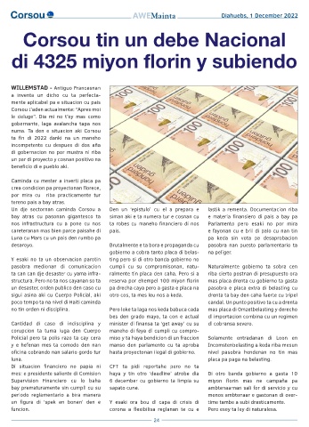 ta can can dje desaster cu yama infra- ralmente tin placa den caha. Pero si a riba cierto postnan di presupuesto ora