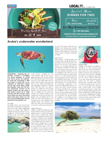 your stay in Aruba. The underwa- from Palm Beach. From the unique a pleasant temperature. The name to the sea. There are diverse spots