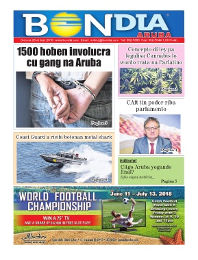 Dialuna 25 di Juni 2018 www.bondia.com Email: noticia@bondia.com Tel: 582-7800 Fax: 582-7044 1,50 Florin