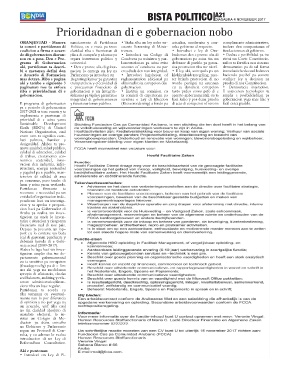do di gobernacion diaran- placa di campaña y ademas pa • Introduci un Codigo di budsman den e prome aña di • Evalua e posibilidad pa in-
