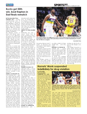 straight and 18th of 20. Mil- Boston beat Portland. New Orleans Pelicans' Zion Williamson (1) looks on from under the basket during free throws next