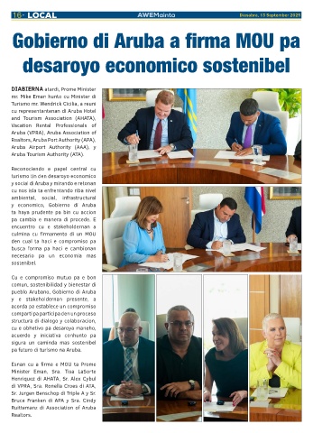 Gobierno di Aruba a firma MOU pa