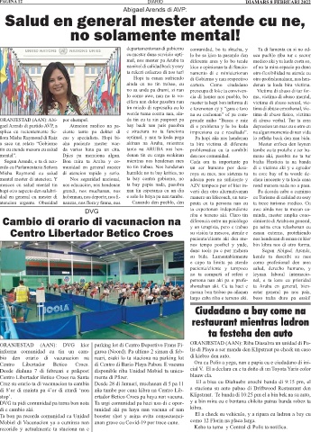 informa comunidad cu tin un cam- garoa (Noord). Pa ultimo 2 siman di feb- lis di Playa a ser manda den Klipstraat pa check un caso