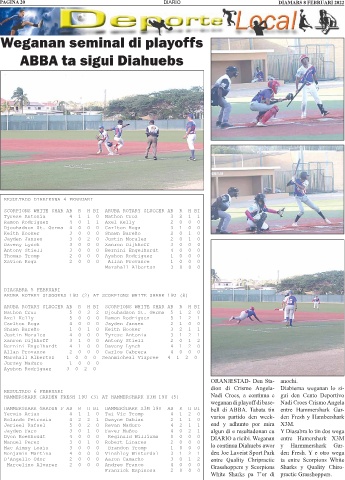 Jayden Faro 3 0 1 0 Faver Muñoz 4 0 2 1 algun di e resultadonan cu Y Diasabra lo tin dos wega