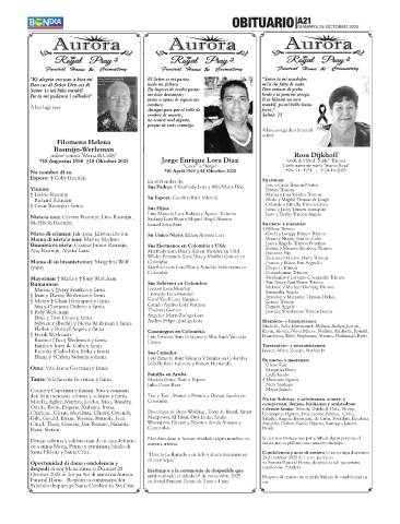 October 2025 di 2or pa 4or di atardi na Aurora será realizado el sábado 01 de noviembre 2025 Despues di entiero no ta ricibi bishita di condolencia na