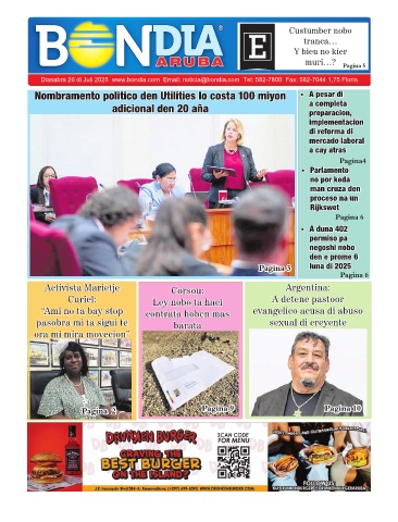 Diasabra 26 di Juli 2025  www.bondia.com  Email: noticia@bondia.com  Tel: 582-7800  Fax: 582-7044 1,75 Florin