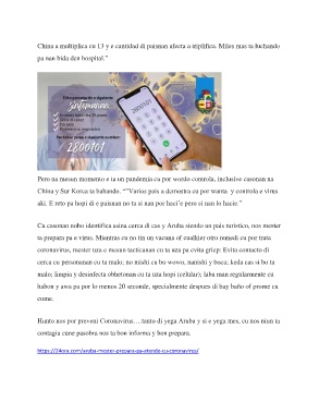 China a multiplica cu 13 y e cantidad di paisnan afecta a triplifica. Miles mas ta luchando