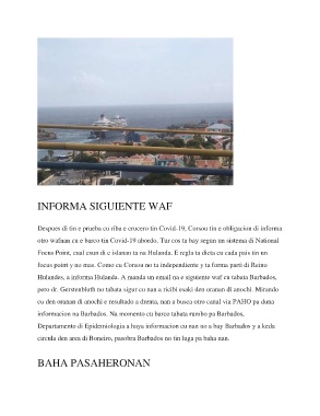 Despues di tin e prueba cu riba e crucero tin Covid-19, Corsou tin e obligacion di informa