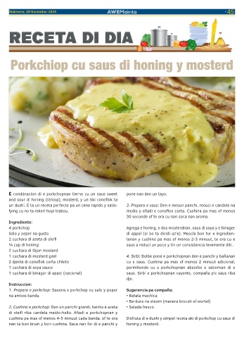 2, Cushina e porkchop: Den un panchi grandi, keinta e azeta • Salada fresco.