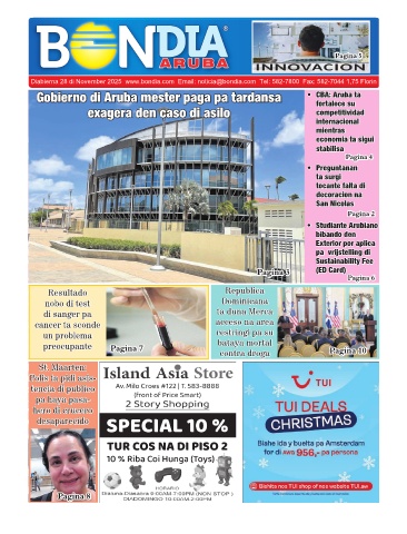 Diabierna 28 di November 2025 www.bondia.com Email: noticia@bondia.com Tel: 582-7800 Fax: 582-7044 1,75 Florin
