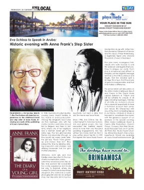 1, Mrs. Eva Schloss will share her ex- causing many Jewish families to did. Her name was Anne Frank. honored to coordinate the event,