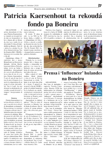 esaki. e isla. I e otro parti ta bai na a risibí e promé prensa i Aktualmente, Boneiru