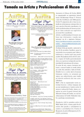 - Diadomingo 22 di november 2020 pa 8’or di mainta Oportunidad pa condolencia 6:00 - 9:00pm Aurora sostene e actividadnan di e Comite di