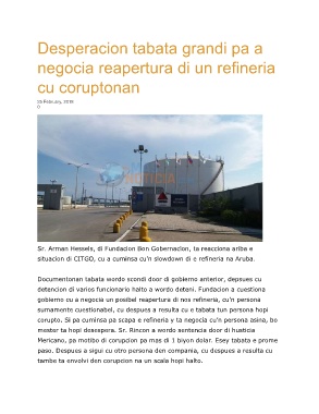 situacion di CITGO, cu a cuminsa cu’n slowdown di e refineria na Aruba.