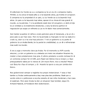 mundo, cu ta petroleo. Y e ta perdiendo esaki door di corupcion y e doño di dje
