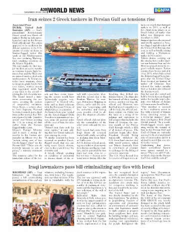 earlier from the Iranian- istry said. other crew onboard the ves- row mouth of the Persian Greek-flagged vessels oper-
