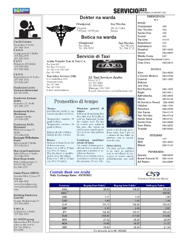 Sabana Blanco 8 Aruba Den dia fuerte te posible- calmente bastante oost te noordwest di cos- Aurora 588-6699