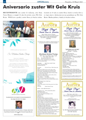 Ergard Tromp y Marianita Figaroa Ta invita pa acto di entierro, cual lo tumalugarna Aurora