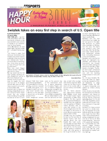NEW YORK (AP) — Iga Swi- Open quarterfinals.