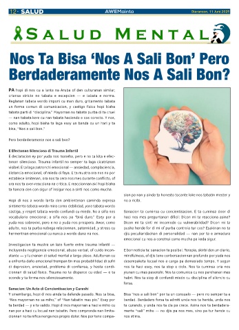 cionnan di salud fisico. Trauma no ta disparce cu edad — e ta yiunan cu mas pasenshi. Nos ta comunica cu nos parehanan mas