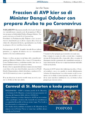 gunta pa Minister Oduber riba e tema di Coronavirus. diaranson atardi cu presencia di e mandatario encarga, a