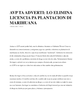 marihuana na Aruba. Bou di e capa di pa motibonan “medicinal”, Gobierno tin intencion