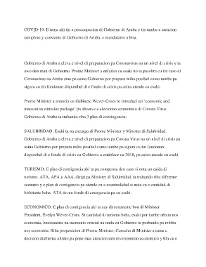 Gobierno di Aruba ta trahando riba 3 plan di contingencia: