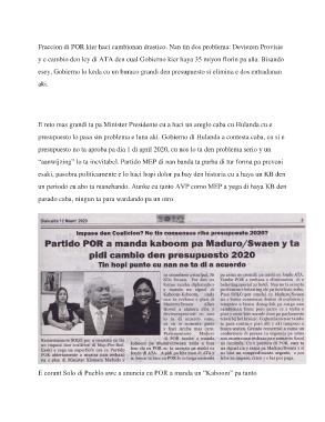 presupuesto no ta aproba pa dia 1 di april 2020, cu nos lo ta den problema serio y un