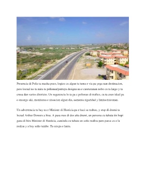 crusa den varios districto. Un sugerencia lo ta pa e polisnan di trafico, cu ta esun ideal pa