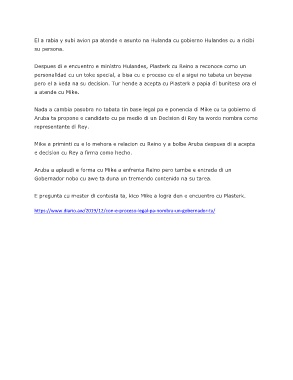 Mike a priminti cu e lo mehora e relacion cu Reino y a bolbe Aruba despues di a acepta