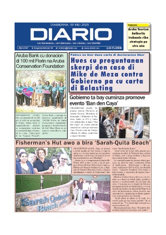 Aruba Bank cu donacion Pakico no kier duna carta di declaracion liber
