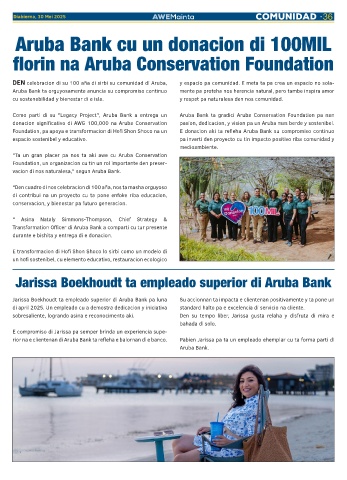 Aruba Bank ta orguyosamente anuncia su compromiso continuo mente pa proteha nos herencia natural, pero tambe inspira amor