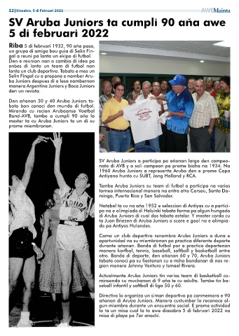 añanan di Aruba Juniors. Manera custumber lo reconoce al-