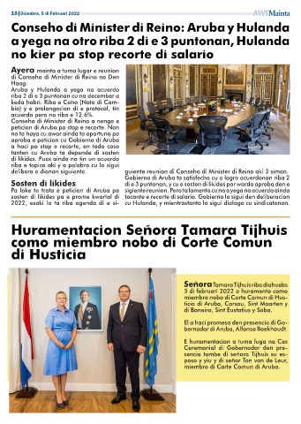 Gobierno di Aruba ta satisfecho cu a logra acuerdonan riba 2