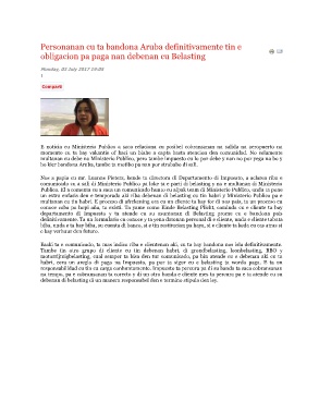 Nos a papia cu mr. Luanne Pieters, kende ta directora di Departamento di Impuesto, a aclarea riba e
