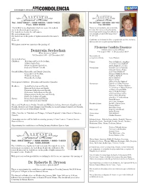 Cremation service will be held on saturday january 6 from 9 am to 11 am at Aurora Subrina(o)nan: Fabiola, Lucy, Andre, Randall, Vanessa,