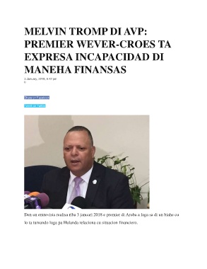 Den un entrevista realisa riba 3 januari 2018 e premier di Aruba a laga sa di un biahe cu