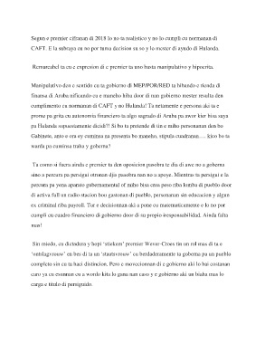 prome pa grita cu autonomia financiero ta algo sagrado di Aruba pa awor kier hisa saya