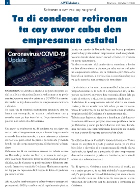 GOBIERNO di Aruba a anuncia su plan di ayudo so- propio Gobierno cu ta doño di e empresanan aki, ta dis-