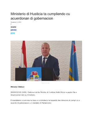 ORANJESTAD (AAN): Dialuna mainta Minister di Husticia Andin Bikker a papia riba e