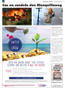 minimum deposit of AWG. 5,000 is applicable. A switch bonus of AWG 100.- is applicable for Retail customers who switches their savings account from another Financial Institution and opens a Time