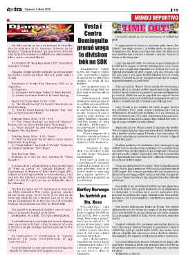5.30 pm i 6.00 pm na Napa Zeelandia patras na Tire anotá Aldimar Reigina (2x) haltu. Nos mester idealisá kampaña pa popularisá e deporte