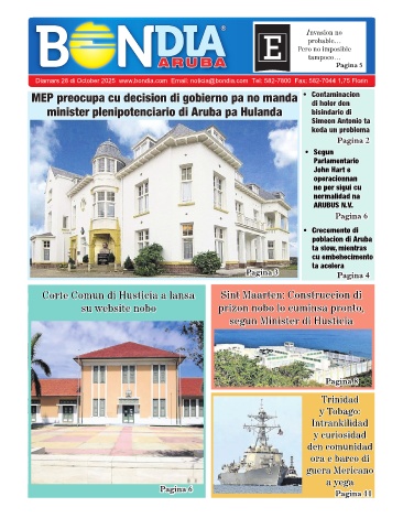 Diamars 28 di October 2025 www.bondia.com Email: noticia@bondia.com Tel: 582-7800 Fax: 582-7044 1,75 Florin