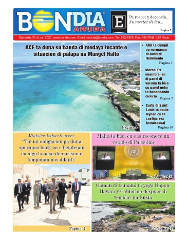 Diahuebs 31 di Juli 2025 www.bondia.com Email: noticia@bondia.com Tel: 582-7800 Fax: 582-7044 1,75 Florin