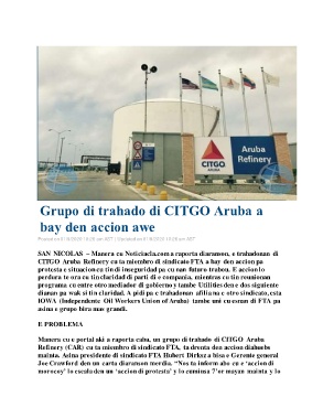 CITGO Aruba Refinery cu ta miembro di sindicato FTA a bay den accion pa
