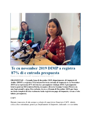 critica riba e entradanan genera pa Departamento di Impuesto, indicando cu e no tabata